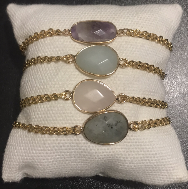 | Pierre | Amazonite, Labradorite, Lapis lazuli, Quartz rose |
